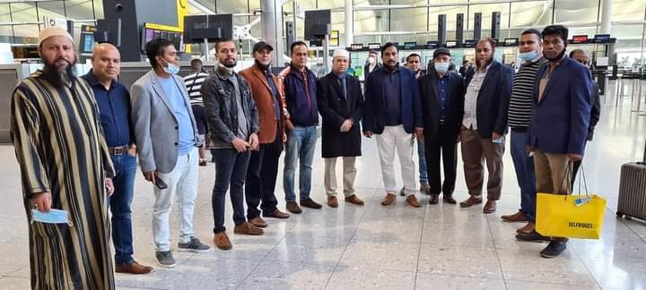 হিথ্রো বিমানবন্দরে নিজাম উদ্দিন হাজারীকে বিদায় জানাচ্ছেন ফেনী সমিতি ইউকে’র নেতৃবৃন্দ।
