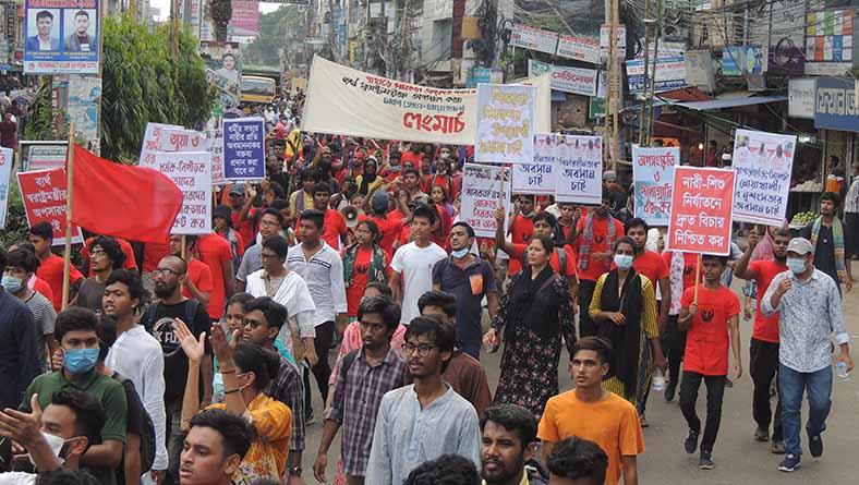 বাংলাদেশ ছাত্র ফেডারেশনের সভাপতি গোলাম মোস্তফা বলেন, ধর্ষণ ও বিচারহীনতার বিরুদ্ধে আমাদের এই লংমার্চ। আমরা ধর্ষকদের জন্য যে আইন সর্বোচ্চ শাস্তি ফাঁসি অনুমোদন হয়েছে আমরা সে আইন অনুযায়ী ফাঁসি দ্রুত বাস্তবায়ন চাই। বর্তমানে আইন শৃঙ্খলার যে অবনতি সে জন্য আমরা স্বরাষ্ট্রমন্ত্রীর পদত্যাগ দাবী করছি।