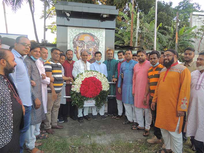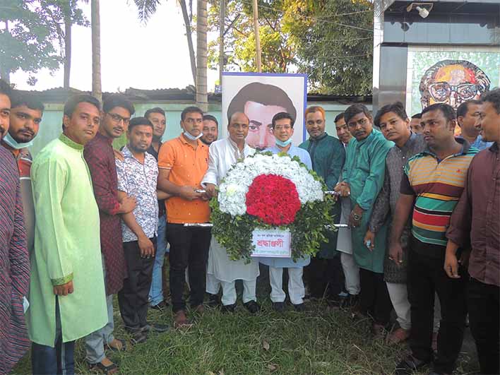 কর্মসূচির শুরুতে বিকাল সাড়ে ৪টায় জেলা যুবলীগের সভাপতি এবং সাধারণ সম্পাদকের নেতৃত্বে শহরের রাজাঝির দিঘীরপাড়ে জাতির জনক বঙ্গবন্ধু শেখ মুজিবুর রহমানের প্রতিকৃতিতে পুষ্পস্তবক অর্পন করা হয়। এসময় সংগঠনের প্রতিষ্ঠাতা চেয়ারম্যান শেখ ফজলুল হক মনির অস্থায়ী প্রতিকৃতিতে পুষ্পমাল্য অর্পণ করে শ্রদ্ধা জানায় নেতাকর্মীরা।