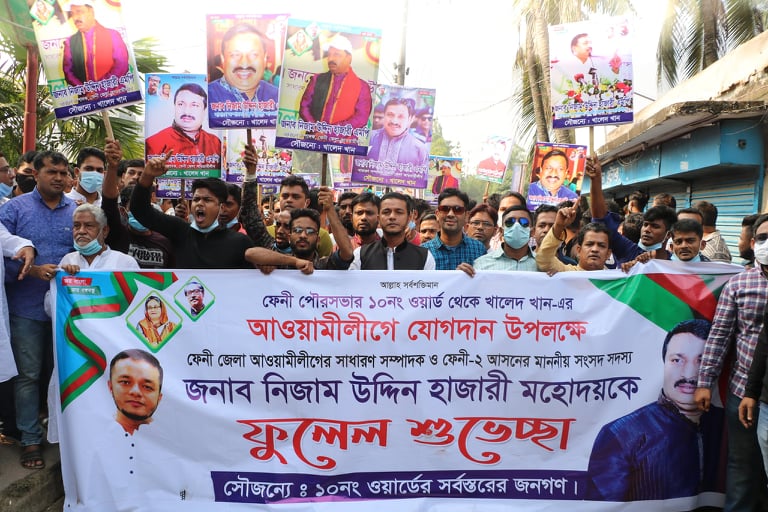 ফেনী পৌর ১০ নম্বরের বাসিন্দা বিশিষ্ট ব্যবসায়ী ও সমাজ সেবক মনির উদ্দিন খান পাঠান সেলিমের ছেলে খালেদ খান আনুষ্ঠানিকভাবে বাংলাদেশ আওয়ামী লীগের রাজনীতিতে যুক্ত হয়েছেন। আজ বৃহস্পতিবার (৩ ডিসেম্বর) সকালে শহরের মাষ্টারপাড়ায় জেলা আওয়ামী লীগের সাধারণ সম্পাদক ও ফেনী-২ আসনের সাংসদ নিজাম উদ্দিন হাজারীর হাতে ফুলের তোড়া দিয়ে তিনি আওয়ামী লীগে যোগদান করেন।