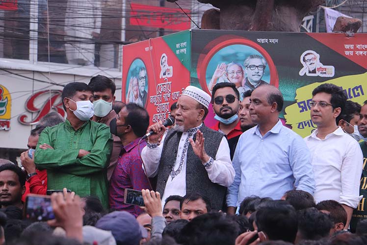 কেন্দ্রীয় কর্মসূচির অংশ হিসেবে আজ বিকালে শহরের দোয়েল চত্ত্বরে আয়োজিত সমাবেশে যুবলীগ ও ছাত্রলীগের নেতারা এ ঘটনার তীব্র নিন্দা ও ঘৃণা প্রকাশ করে বলেন, দেশ যতদিন থাকবে বঙ্গবন্ধুর ভাস্কর্যও থাকবে। বাংলাদেশের স্বাধীনতার ইতিহাস মুছে ফেলার জন্য এবং প্রধানমন্ত্রী শেখ হাসিনার অগ্রযাত্রা থামানোর স্বাধীনতা বিরোধী শক্তিরা আবার ষড়যন্ত্র করছে। সকলে মিলে এ অপশক্তিতে প্রতিহত করতে হবে।