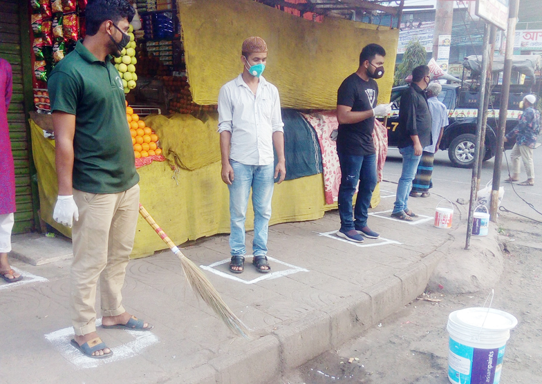 শহরের মুক্তবাজার এলাকায় গিয়ে দেখা যায়, ক্রেতারা চিহ্নিত স্থানে নির্দিষ্ট দূরুত্বে দাঁড়াচ্ছেন। সামনের ব্যক্তিটি কেনাকাটা শেষ করলে তিনি স্থান ত্যাগ করছেন। ততক্ষণ পেছনের ব্যক্তিটি তিন ফুট পেছনে চিহ্নিত স্থানে অপেক্ষা করছেন। সামনের জন স্থান ত্যাগ করলেই কেবল পেছনের জন এগিয়ে গিয়ে কেনাকাটা শুরু করতে পারছেন। ফলে ঘর থেকে বের হওয়া লোকজন একে অন্যের সংস্পর্শে আসছেন না। তাদের মধ্যে সামাজিক দূরুত্ব বজায় থাকছে।