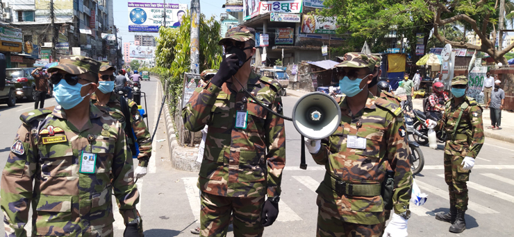 উল্লেখ্য, সেনাবাহিনীর টহল জনসমাগম কঠোরভাবে নিরুৎসাহিত করছে। সবাইকে নিতান্ত প্রয়োজন ব্যতীত বাসায় থাকার জন্য সেনাবাহিনী অনুরোধ জানাচ্ছে। বাজার ও জরুরী সেবামূলক এলাকায় সামাজিক দুরত্ব নিশ্চিত করতে বলা হচ্ছে।