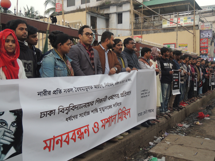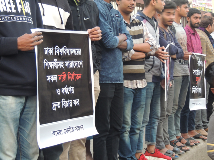 প্রতিবাদ কর্মসূচীর আহ্বায়ক ও ফেনী প্রেসক্লাবের সাবেক সভাপতি আসাদুজ্জামান দারা বলেন, সাম্প্রতিককালে দেশের বিভিন্ন স্থানে এসব ঘটনা ঘটে চলেছে। ঢাকা বিশ্ববিদ্যালয়ের মেধাবী শিক্ষার্থী আমার ছোট বোন জঘন্যতম নির্যাতনের শিকার হয়েছে। কিন্তু এ ঘটনায় যারা বা যিনি জড়িত তাদের এখনও আইনের আওতায় আনা যায় নি। আজকের এ প্রতিবাদ সমাবেশের মাধ্যমে আমরা ধর্ষককে গ্রেফতার করে আইনের আওতায় আনতে এবং ধর্ষণের সর্বোচ্চ শাস্তি মৃত্যুদন্ড কার্যকর করার দাবি জানাচ্ছি।