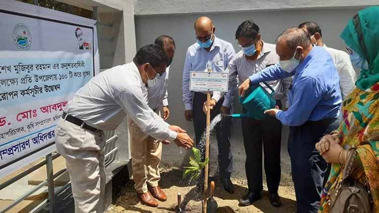 এরপর মহাপরিচালক উপজেলা কৃষি অফিস প্রাঙ্গনে একটি ফলজ গাছের রোপন করে মুজিব শতবর্ষ উপলক্ষ্যে বৃক্ষরোপণ কর্মসূচির উদ্বোধন করেন।