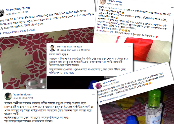 হ্যালো ফেনী কাজ করছে ঘরে ঘরে ঔষধসেবা পৌঁছে দিতে। সেবার পরিধি ফেনী জেলা হলেও কখনো কখনো রাজ্যের ঝুঁকি মাথায় নিয়ে সীমানার বাইরেও ছুটে যায় হ্যালো ফেনীর বাইক।