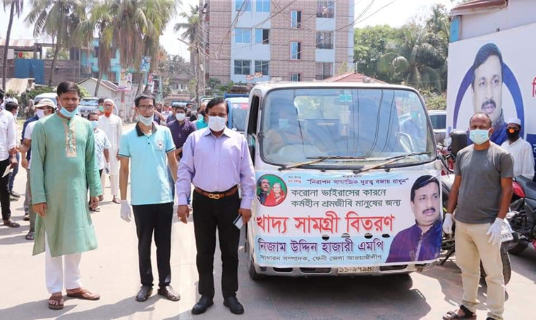 উল্লেখ্য, ফেনী সদর আসনে করোনা পরিস্থতিতে কর্মহীন শ্রমজীবী ও নিন্ম আয়ের ৫০ হাজার মানুষকে সহায়তা করছেন সাংসদ নিজাম উদ্দিন হাজারী। গত তিন দিনে ফেনী সদরের ১২ ইউনিয়ন ও প্রতিটি ওয়ার্ডে স্থানীয় জনপ্রতিনিধিদের মাধ্যমে ত্রাণ পৌঁছে দেয়া হয়েছে। তারই ধারাবাহিকতায় পৌরসভার আজ বুধবার ১৮টি ওয়ার্ডে স্থানীয় কাউন্সিলর এবং আওয়ামীলীগ সভাপতি-সম্পাদকের মাধ্যমে কর্মহীন হয়ে পড়া দিনমজুর ও হতদরিদ্রদের নিত্য প্রযোজনীয় খাদ্য সামগ্রী বন্টন করা হয়। এছাড়া জেলার অন্যান্য ৫টি উপজেলায় আরও ৭০ হাজার পরিবারকে সাংসদ নিজাম উদ্দিন হাজারী সহায়তা করবেন বলে দায়িত্বশীল সূত্র জানিয়েছে।