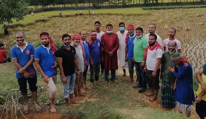 ফেনী সদরের ধর্মপুরে কৃষকের জমির ধান কেটে দিয়েছে সদর উপজেলা ছাত্রলীগের নেতাকর্মীরা।
