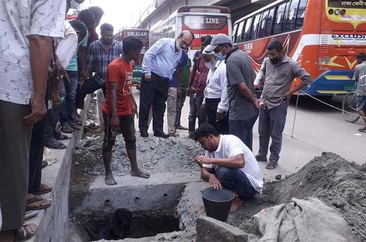 মেরামত কার্যক্রম পরিদর্শন করছেন ফেনী জেলা প্রশাসক মোঃ ওয়াহিদুজজামান