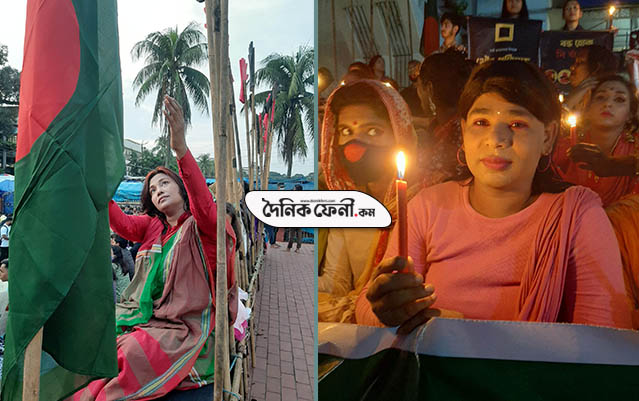 ফেনীর কেন্দ্রীয় শহীদ মিনারে দেখা যায়, জাতীয় পতাকার পানে করুণভাবে চেয়ে আছেন এক নারী। শিশু, কিশোরী ও নারী বিভিন্ন অঙ্গ ভঙ্গিতে প্রকাশ করছে ব্যতিক্রমী প্রতিবাদ। সন্ধ্যায় প্রজ্জ্বলিত মোমবাতি অন্ধকার ঠেলে আলোর আগমনী বার্তা দিচ্ছিল।