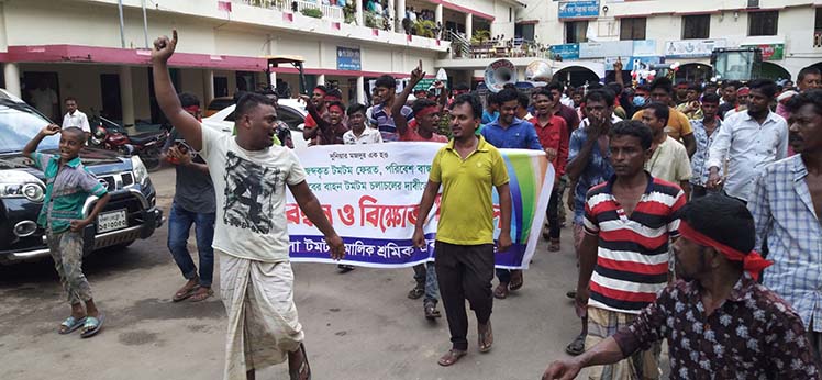 পৌর এলাকায় নির্দিষ্ট সময় পর্যন্ত ইজিবাইক চলার অনুমতি এবং পৌরসভায় জব্দকৃত ইজিবাইক ছেড়ে দেয়ার দাবীতে ফেনী শহরে বিক্ষোভ মিছিল করেছে ইজিবাইক শ্রমিক সংগঠন। আজ মঙ্গলবার (১৩ অক্টোবর) বেলা ১১টায় শ্রমিকরা দাবী নিয়ে পৌরসভায় আসে এবং প্যানেল মেয়র আশ্রাফুল আলম গিটারের হাতে দাবী সম্বলিত স্মারকলিপি প্রদান করে। এসময় আান্দোলনরত শ্রমিকদের শান্ত করার চেষ্টা করেন প্যানেল মেয়র।