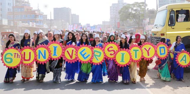 আজ সোমবার সকালে শিক্ষার্থী, শিক্ষক ও কর্মকর্তা, আমন্ত্রিত অতিথিদের নিয়ে একটি বর্ণাঢ্য র্যালি শহরের ট্রাংক রোড থেকে শুরু হয়ে শহরের প্রধান প্রধান সড়ক প্রদক্ষিণ করে ক্যাম্পাসে এসে শেষ হয়।