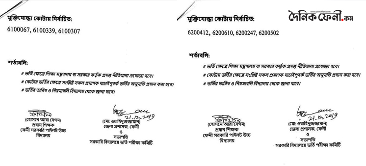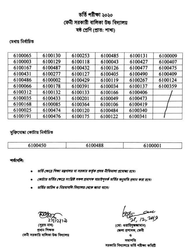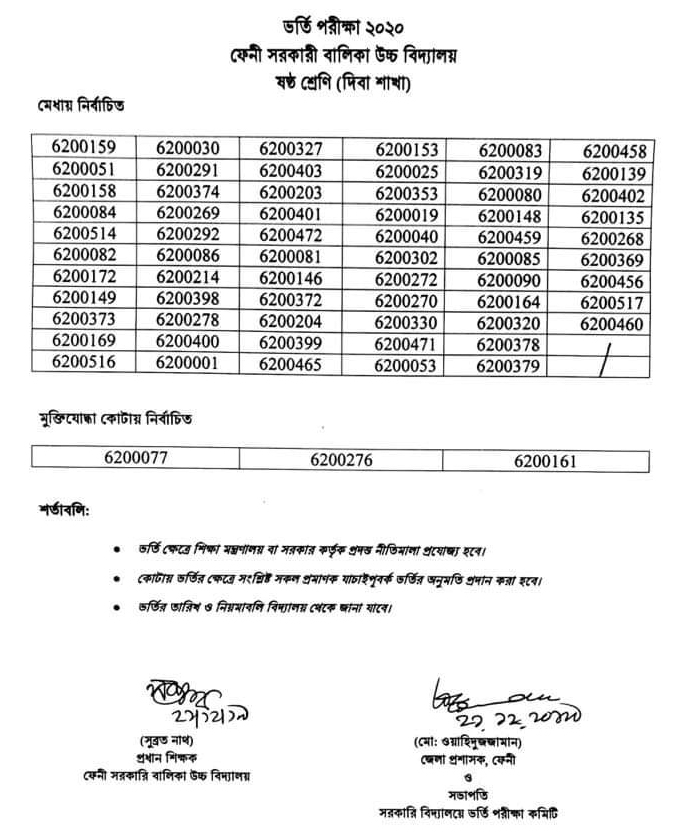 ফেনী সরকারি পাইলট ও সরকারি বালিকা উচ্চ বিদ্যালয়ের ২০২০ সালের ৬ষ্ঠ শ্রেণীর ভর্তি পরীক্ষার ফল প্রকাশ করা হয়েছে। শনিবার (২১ ডিসেম্বর) সন্ধ্যায় উত্তরপত্র মূল্যায়ণ শেষে ফলাফল প্রকাশ করে সরকারি বিদ্যালয় ভর্তি পরীক্ষা কমিটি। জেলার বিভিন্ন প্রাথমিক বিদ্যালয়ে ৫২ জন শিক্ষক পরীক্ষার উত্তরপত্র মূল্যায়ণ করেন।