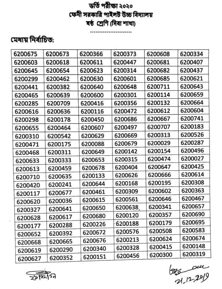 বিদ্যালয় সূত্রে জানা গেছে, ফেনী সরকারি পাইলট উচ্চ বিদ্যালয়ে ২০২০ শিক্ষাবর্ষে ৬ষ্ঠ শ্রেণিতে প্রাতঃ ও দিবা শাখায় মোট ৩২০টি আসনের বিপরীতে ১৪৭৪ জন পরীক্ষার্থী ভর্তি পরীক্ষায় অংশগ্রহণ করে। শুক্রবার সকাল ১০টা থেকে ১২টা পর্যন্ত বাংলা, ইংরেজী ও গণিত বিষয়ে ১০০ নম্বরের মূল্যায়ন পরীক্ষা অনুষ্ঠিত হয়।