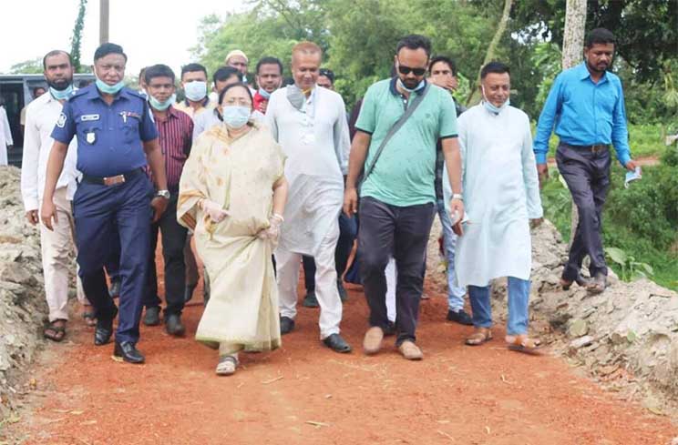 বাস্তবায়নাধীন প্রকল্প ঘুরে দেখছেন শিরীন আখতার এমপিসহ অতিথিরা।