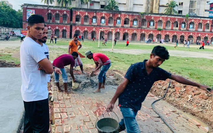 মাঠের পশ্চিমপ্রান্তে পাশাপাশি ইট সিমেন্টের দুইটি ক্রিকেট পিচ ঢালাইয়ের কাজ চলছে। নির্দেশনায় ব্যস্ত সাইফুদ্দিন। সন্ধ্যা পেরিয়ে রাত অব্দি পিচের পাশে দাঁড়িয়ে বসে পাহারা দেন, যেন অযাচিতভাবে পিচ নষ্ট না হয়।