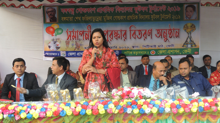 বঙ্গবন্ধু ও বঙ্গমাতা গোল্ডকাপের বিভাগীয় পর্যায়ের খেলায় ফেনী জেলার শ্রেষ্ঠত্ব ধরে রাখতে খেলোয়াড় ও শিক্ষকদের প্রতি আহ্বান জানিয়েছেন ফেনী জেলা প্রশাসক মোঃ ওয়াহিদুজজামান। আজ বুধবার (৮ জানুয়ারি) বিকাল ৫টায় ফেনী পিটিআই মাঠে বঙ্গবন্ধু ও বঙ্গমাতা ফুটবল গোল্ডকাপ প্রাথমিক বিদ্যালয় টুর্নামেন্টের পুরস্কার বিতরণী অনুষ্ঠানে তিনি এ আহ্বান জানান।