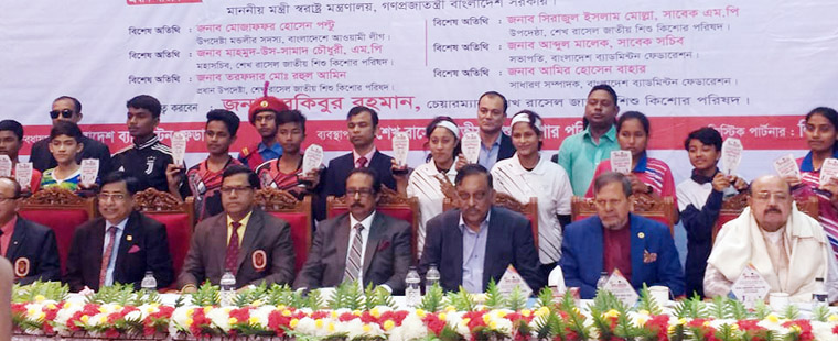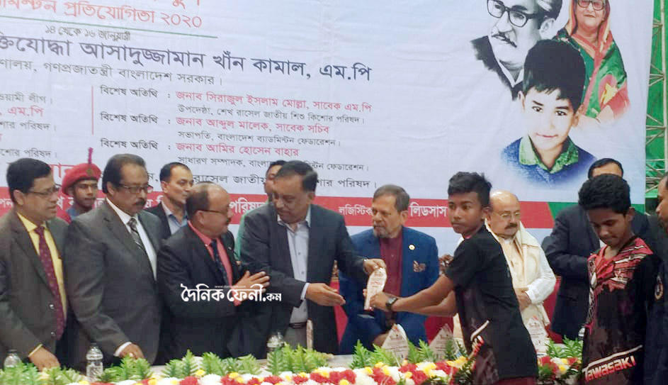 আয়োজিত পুরস্কার বিতরণ অনুষ্ঠানে প্রধান অতিথি স্বরাষ্ট্রমন্ত্রী বীর মুক্তিযোদ্ধা আসাদুজ্জামান খাঁন কামাল এমপি বিজয়ীদের হাতে পুরস্কার তুলে দেন। শেখ রাসেল জাতীয় শিশু কিশোর পরিষদের চেয়ারম্যান রকিবুর রহমানের সভাপতিত্বে বিশেষ অতিথি ছিলেন বাংলাদেশ আওয়ামী লীগের উপদেষ্টা মন্ডলীর সদস্য মোজাফফর হোসেন পল্টু, শেখ রাসেল জাতীয় শিশু কিশোর পরিষদের মহাসচিব মাহমুদ-উস-সামাদ চৌধুরী এমপি, পরিষদের প্রধান উপদেষ্টা তরফদার মোঃ রুহুল আমিন, পরিষদের উপদেষ্টা সাবেক এমপি সিরাজ উল ইসলাম মোল্লা, বাংলাদেশ ব্যাডমিন্টন ফেডারেশনের সভাপতি ও সাবেক সচিব আবদুল মালেক এবং ফেডারেশনের সাধারণ সম্পাদক ও ফেনী জেলা ক্রীড়া সংস্থার সাধারণ সম্পাদক আমির হোসেন বাহার।