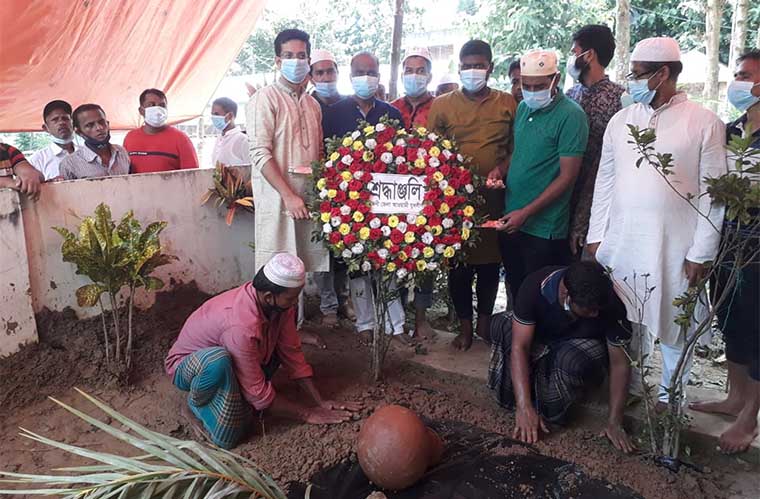 মরহুমের কফিনে জেলা প্রশাসক, সাংসদ নিজাম হাজারী, উপজেলা চেয়ারম্যান, উপজেলা প্রশাসন, জেলা আওয়ামী লীগ, যুবলীগ, ছাত্রলীগ, ইউপি চেয়ারম্যানরাসহ, মরহুমের প্রতিষ্ঠিত বিভিন্ন প্রতিষ্ঠানসহ বিভিন্ন রাজনৈতিক ও সামাজিক সংগঠনের পক্ষ থেকে পুষ্পস্তবক অর্পণ করে শ্রদ্ধা জানানো হয়। জানাযা পূর্বে পুলিশের একটি চৌকস দল তাকে গার্ড অব অনার প্রদান করে।