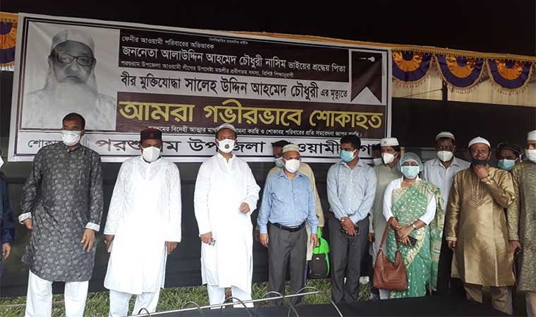 লাল সবুজ মোড়ানো কফিনে করে নিজ গ্রামে ফিরলেন বাংলাদেশ আওয়ামী লীগের কেন্দ্রীয় কার্যনির্বাহী সংসদের সাবেক সদস্য, সাবেক আমলা ফেনী ইউনিভার্সিটির ট্রাস্টি বোর্ডের চেয়ারম্যান আলাউদ্দিন আহমেদ চৌধুরী নাছিমের পিতা প্রবীণ আওয়ামী লীগ নেতা ও মুক্তিযোদ্ধা সালেহ উদ্দিন আহমেদ চৌধুরী।