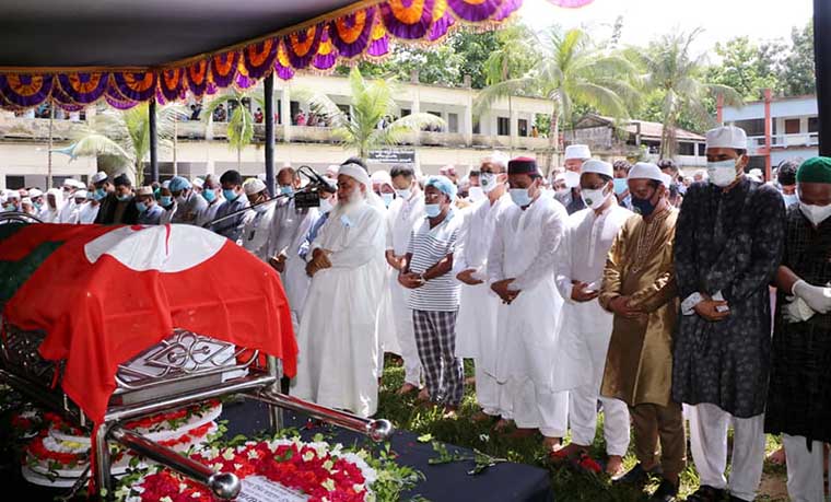 আজ সোমবার (২৭ জুলাই) পরশুরামের গুথুমা চৌধুরী বাড়ির পাশে তমিজ উদ্দিন আহমেদ চৌধুরী মসজিদ সংলগ্ন পারিবারিক কবরস্থানে তাঁকে রাষ্ট্রীয় মর্যাদায় দাফন করা হয়েছে।