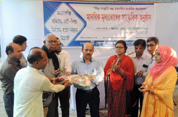 জেলা কালচারাল অফিসার জান্নাত আরা যুথি জানান, মাদকাসক্তি, জঙ্গিবাদ, নারী ও শিশু নির্যাতন রোধে শিল্প-সংস্কৃতি ঋদ্ধ সৃজনশীল মানবিক বাংলাদেশ গড়ার লক্ষ্যে সারাদেশে ‘মানবিক মুল্যবোধের সাংস্কৃতিক অনুষ্ঠান’র আয়োজন করেছে বাংলাদেশ জেলা শিল্পকলা একাডেমী।