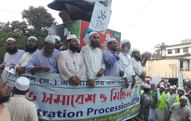 মহানবী হযরত মুহাম্মদ (সাঃ) কে নিয়ে ফ্রান্সে ব্যঙ্গচিত্র প্রদর্শন এবং ফ্রান্স সরকারের ইসলাম বিদ্বেষী অবস্থানের প্রতিবাদে ফেনীতে বিক্ষোভ সমাবেশ করেছে ইসলামী আন্দোলন।