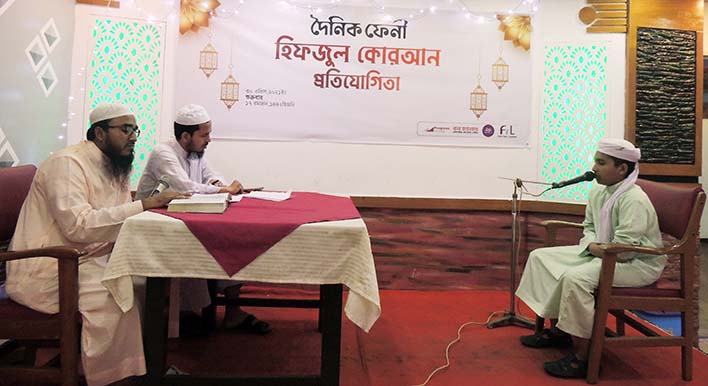স্বাস্থ্যবিধি ও সামাজিক দুরত্ব মেনে বিভিন্ন মাদরাসার হিফয বিভাগের শিক্ষার্থীদের অংশগ্রহণে শেষ হয়েছে দৈনিক ফেনী আয়োজিত হিফজুল কোরআন প্রতিযোগিতা ২০২১। গতকাল শুক্রবার (৩০ এপ্রিল) শহরের মিজান রোডের ক্রাউনওয়েস্ট রেস্টুরেন্টে আয়োজিত প্রতিযোগিতায় দুইটি বিভাগে মোট ২৫ জন প্রতিযোগি অংশ নেয়। এতে চুড়ান্ত প্রতিযোগিতায় বিজয়ী ৬ শিক্ষার্থীকে সম্মাননাসহ অংশগ্রহণকারী সকলকে সনদ প্রদান করা হয়।