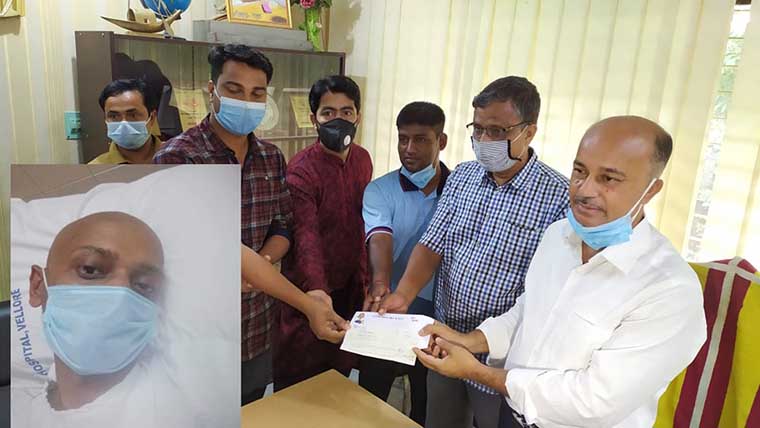 অন্যদিকে ক্যান্সার আক্রান্ত আলমগীরের পরিবারের সাহায্যের ডাকে সাড়া দিয়ে তার চিকিৎসার জন্য ১০ হাজার টাকা অনুদান প্রদান করেছেন মেয়র খোকন। আজ সকালে নিজ কার্যালয়ে আলমগীর বিজয়ের খালাত ভাই জহিরুল ইসলামের হাতে চেক তুলে দেন তিনি।